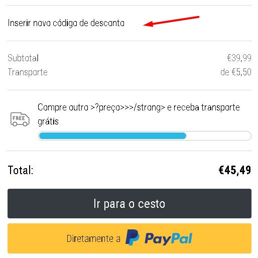 Para isso, apenas devem aceder ao carrinho, na zona onde diz “inserir novo código de desconto” e colocar “HUGOBARRETO” onde diz – O teu código.